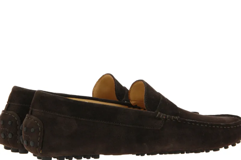 Der dunkelbraune Scarparossa Slipper aus Veloursleder begeistert auf ganzer Linie. Das Innenfutter sowie die Decksohle sind aus hochwertigem, feinen Leder gefertigt. Die Laufsohle ist ebenfalls mit Leder verarbeitet und verfügt über Gummianteile, die für einen sicheren Halt auf jedem Untergrund sorgen. Die Schuhe von Scarparossa werden zu 100 % in Italien gefertigt.