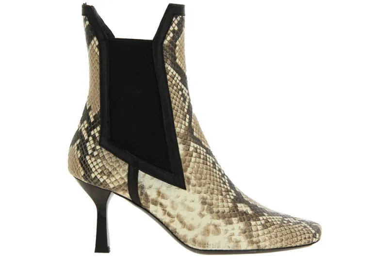Der High Heel von AGL überzeugt mit seinem klassisch-edlen Stil und femininer Note. Das wunderschöne Modell aus hochwertigem Leder im Python-Print sorgt für ein aufregendes Finish. Die schwarzen beidseitigen Gummizüge erleichtern den Einschlupf. Hergestellt mit einer Leder- & Gummisohle wurde die AGL Stiefelette zu 100 % in Italien.