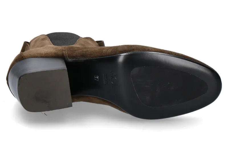 Der AGL Bootie aus Veloursleder in Grün präsentiert sich als stilvoller und komfortabler Damenschuh. Das Veloursleder verleiht ihm eine luxuriöse Ausstrahlung, während der beiseitige Stretcheinsatz eine flexible Passform und einfaches An- und Ausziehen ermöglicht. Mit einem Absatz von 50 mm bietet der Schuh eine angenehme Höhe, die dennoch den ganzen Tag über bequem zu tragen ist. Die Ledersohle mit Gummieinsatz sorgt für optimale Traktion und Stabilität beim Gehen, während das Lederinnenfutter ein angenehmes Gefühl beim Tragen gewährleistet. Die runde Form des Booties verleiht ihm eine zeitlose Eleganz, die vielseitig kombinierbar ist. Egal, ob im Büro, bei besonderen Anlässen oder im Alltag, dieser AGL Bootie bietet sowohl Stil als auch Komfort. Die hochwertige Verarbeitung und das ansprechende Design machen ihn zu einem zeitgemäßen und modischen Begleiter für jede Gelegenheit.
