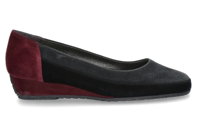 Mit dem Bagnoli Slipper in schwarz/anthrazit/rot aus feinem Velourleder sind Sie bestens für die Herbst/Winter Saison ausgestattet. Der klassische Farbmix ist vielseitig kombinierbar und passt sich Ihrer winterlichen Garderobe individuell an. Der Bagnoli Slipper ist durch seine bequeme Leistenform und der trittdämpfenden Gummilaufsohle angenehm zu tragen. Die Bagnoli Schuhe zeichnen sich durch beste Verarbeitung und sehr gute Qualität aus. Made in Italy!
