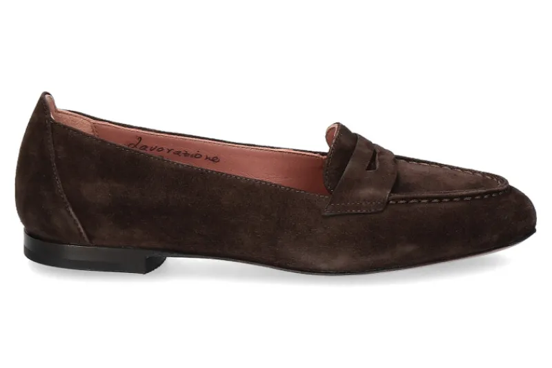 Der dunkelbraune Damenslipper vom italienischen Label Benson´s wurde aus feinem Veloursleder gefertigt. Ausgestattet ist der Schuh mit einer feinen Lederfütterung. Die Laufsohle aus Leder verfügt über einen Gummiteil um besten Tragekomfort zu gewähren. Hergestellt per Handarbeit werden Benson´s Schuhe mit großer Sorgfalt in Italien.