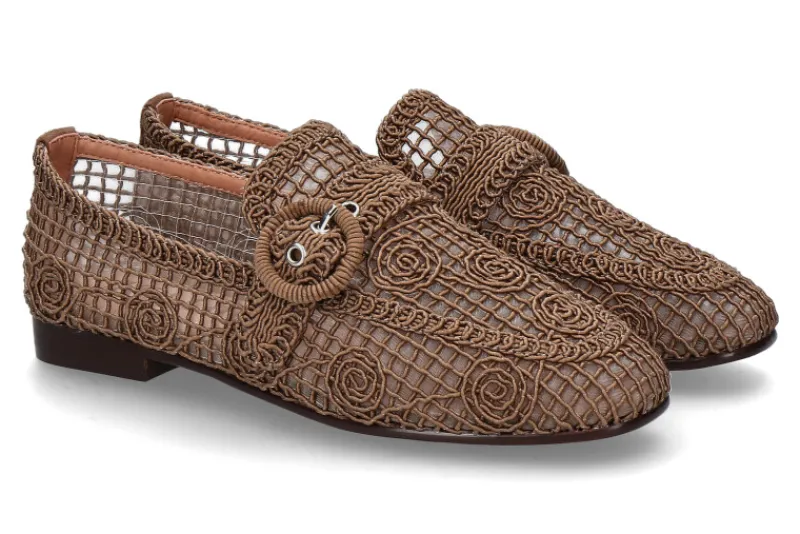 Der Bibi Lou Loafer DALILA in Dunkelbraun bietet eine perfekte Kombination aus stilvollem Design und bequemem Tragekomfort. Das Obermaterial aus Mesh und Textil sorgt für eine luftige Optik und einen modernen Look. Das Meshfutter ermöglicht zusätzlich eine gute Atmungsaktivität, während die Lederdecksohle für ein angenehmes Tragegefühl sorgt. Die Synthetiksohle bietet eine robuste Basis und sicheren Halt. Mit seinem vielseitigen Design lässt sich der Loafer sowohl zu legeren Alltagsoutfits als auch zu eleganteren Looks kombinieren – ein idealer Begleiter für modebewusste Frauen, die Wert auf Komfort und Stil legen.