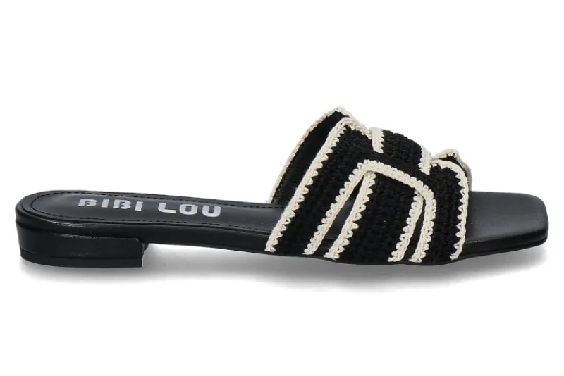 Die Bibi Lou Pantolette HOLLY in Schwarz vereinen modisches Design und Komfort. Das Obermaterial aus gehäkeltem Stoff in Schwarz-Weiß sorgt für einen einzigartigen, trendigen Look, der jedes Outfit aufwertet. Die Lederfütterung im Inneren garantiert ein angenehmes Tragegefühl und eine hohe Haltbarkeit. Diese Pantolette eignet sich perfekt für warme Tage und lässt sich vielseitig zu verschiedenen Freizeit- oder Sommeroutfits kombinieren. Mit ihrem schicken, handwerklichen Design ist die HOLLY ein eleganter und zugleich bequemer Schuh für modebewusste Frauen.