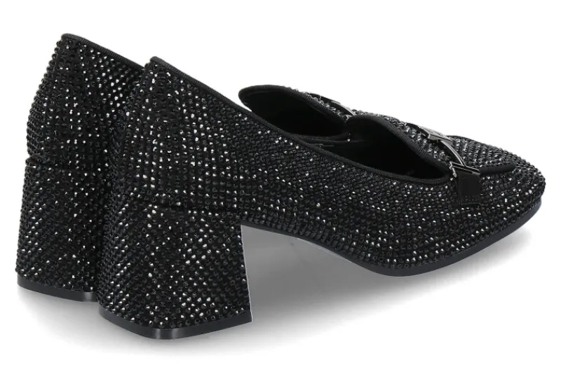 Die Bibi Lou Pumps TINA sind ein glamouröser Blickfang, verziert mit vielen funkelnden Steinen, die dem Schuh eine elegante und festliche Ausstrahlung verleihen. Sie kommen in einer modernen Karree-Form daher, die dem klassischen Design eine zeitgemäße Note verleiht. Die Lederfütterung sorgt für ein komfortables Tragegefühl und optimale Atmungsaktivität. Mit einem 60 mm hohen Blockabsatz bieten diese Pumps sowohl Stabilität als auch eine stilvolle Silhouette. Ideal für besondere Anlässe oder Abendveranstaltungen, bei denen Sie sowohl Komfort als auch glamourösen Stil schätzen. Sie setzen einen glanzvollen Akzent und vervollständigen jedes schicke Outfit perfekt.
