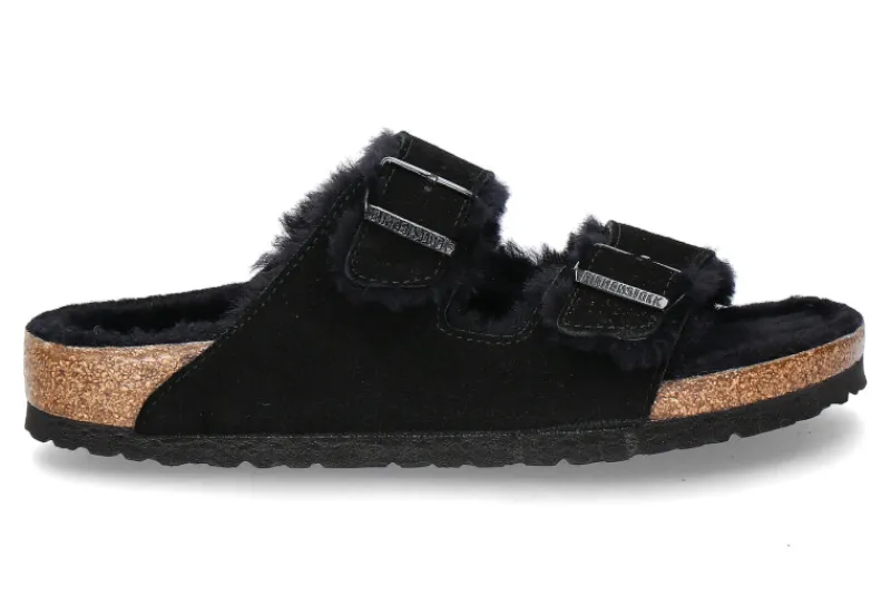 Damen Birkenstock Pantolette gefüttert ARIZONA SCHMAL FUR BLACK