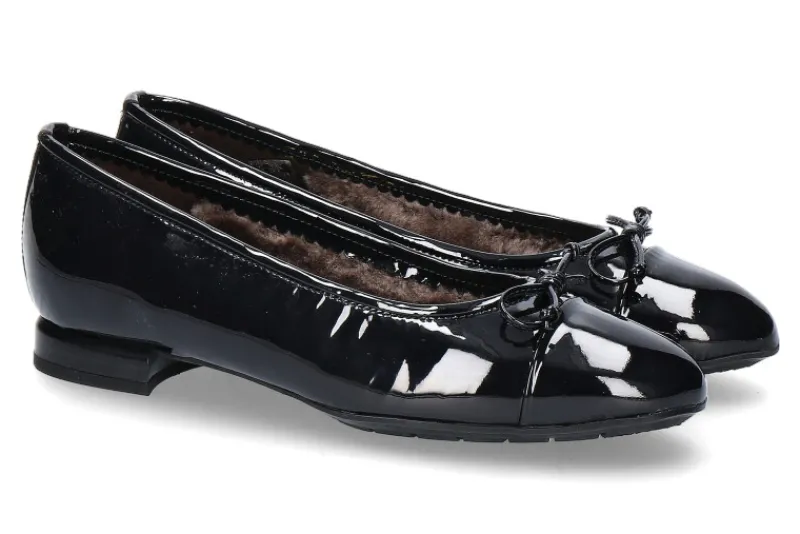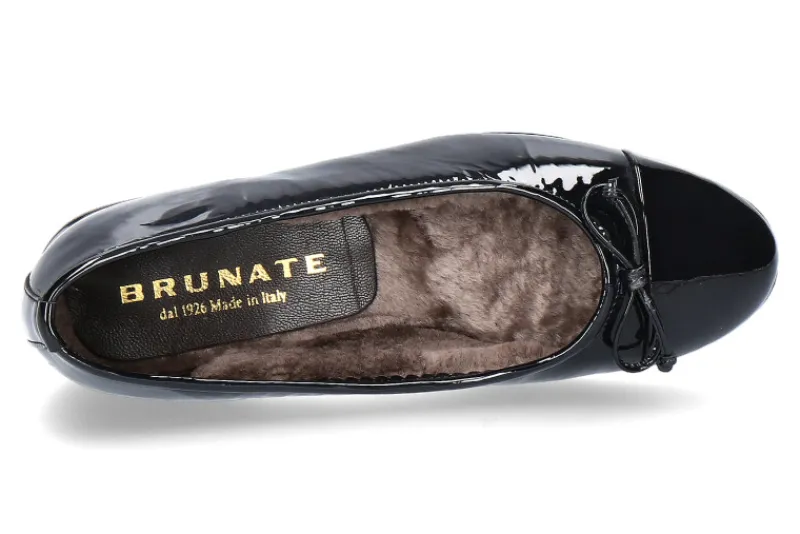 Der klassische Ballerina von Brunate besteht aus Lackleder mit dezenter Schleife. Ausgekleidet ist das Modell mit einer weichen Lammfell Fütterung. Die Laufsohle wurde aus rutschfestem Gummi gefertigt. Hergestellt wurde der dunkelblaue Ballerina PIA mit einer sehr guten Verarbeitung in Italien.