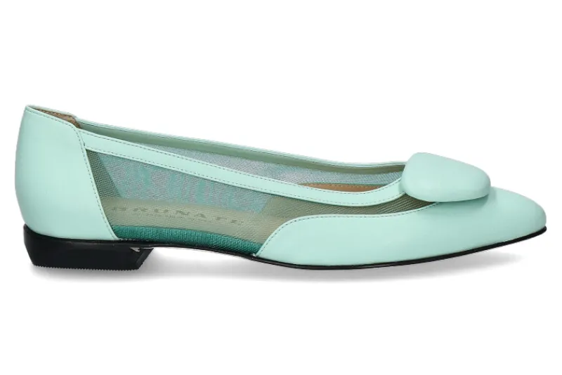 Die Brunate Ballerina ist ein stilvoller und modischer Schuh aus mintfarbenem Leder und Mesh-Material. Die elegante Applikation in Tropfenform verleiht dem Schuh einen Hauch von Eleganz und Raffinesse, während die Ledersohle für eine gute Traktion und Strapazierfähigkeit sorgt. Der 15 mm Absatz bietet zusätzliche Höhe und ein bequemes Trageerlebnis, während die Spitze Form des Schuhs modern und schick ist und perfekt zu vielen Outfits passt. Dieser Schuh ist eine ideale Wahl für eine Vielzahl von Anlässen, von der Arbeit bis hin zu besonderen Feierlichkeiten. Die einzigartige Farbe des mintfarbenen Leders und des Mesh-Materials verleiht dem Schuh eine erfrischende Note und ist eine großartige Möglichkeit, einen Hauch von Farbe in Ihre Garderobe zu bringen. Diese Brunate Ballerina ist ein Must-Have für jede modebewusste Frau.