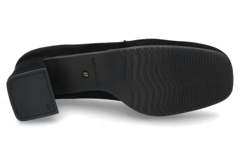 Die Brunate Pumps aus schwarzem Veloursleder vereinen Eleganz und Komfort. Das Innenfutter besteht aus hochwertigem Leder, während der 65mm Blockabsatz Stil und Stabilität bietet. Die rutschfeste Gummilaufsohle sorgt für sicheren Halt. Diese exquisiten Schuhe werden in Italien unter strengsten Qualitätsstandards gefertigt, um höchsten Ansprüchen gerecht zu werden. Perfekt für stilbewusste Frauen, die Luxus und Handwerkskunst schätzen.