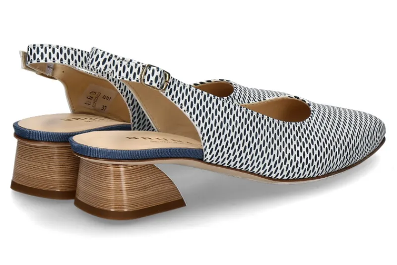 Die Brunate Slingpumps PUFFO AVIO in Blau/Weiß sind die perfekte Kombination aus Eleganz und Komfort. Das stilvolle Design wird durch die hochwertige Lederfütterung abgerundet, die für ein angenehmes Tragegefühl sorgt. Die Pumps verfügen über einen 35 mm hohen Blockabsatz in Holzoptik, der für eine stabile Haltung und zugleich eine feminine Silhouette sorgt. Die klassischen Farbtöne Blau und Weiß lassen sich mühelos in verschiedene Outfits integrieren, von schlichten Alltagslooks bis hin zu eleganteren Anlässen. Mit ihrem zeitlosen Design und dem komfortablen Absatz bieten die Brunate Slingpumps PUFFO AVIO sowohl Stil als auch praktischen Tragekomfort – ideal für stilbewusste Frauen.