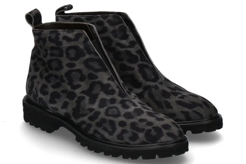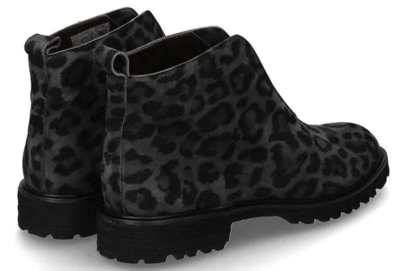 Die modische Stiefelette im Chelsea-Boots Design überzeugt mit einem trendigen Leo Muster. Die Schuhe aus Veloursleder lassen sich perfekt im anstehenden Herbst/Winter kombinieren. Innen ist der Schuhe mit Leder ausgestattet. Die Decksohle ist ebenfalls aus Leder. Der Stretch Einsatz am Schaft ermöglicht einen leichten Einschlupf. Die extra leichte Laufsohle schafft einen angenehmen Tragekomfort. Hergestellt werden die Schuhe in Italien.