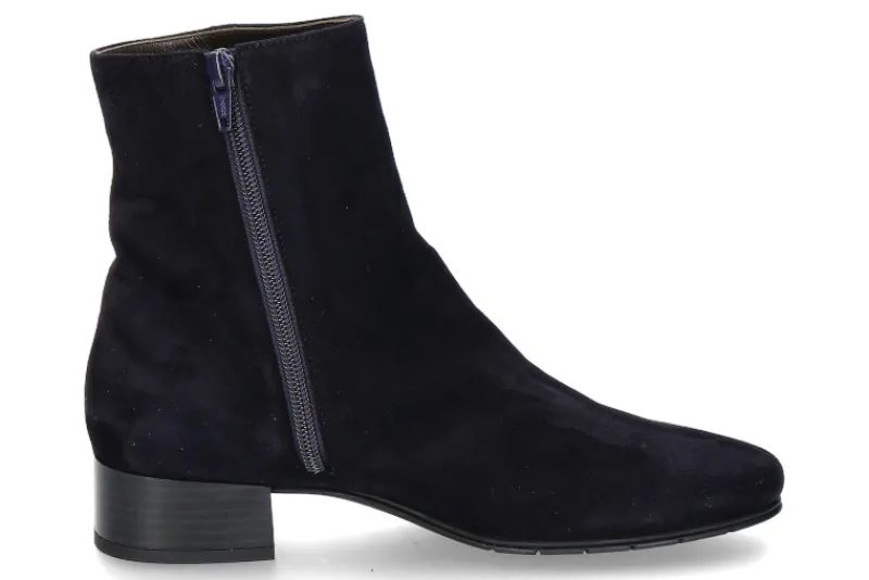 Die klassische Brunate Stiefelette aus dunkelblauem Veloursleder vereint zeitlose Eleganz mit hochwertiger Verarbeitung. Das weiche Veloursleder verleiht der Stiefelette eine edle Optik, während die runde Form für eine feminine Silhouette sorgt. Der stabile 30 mm Blockabsatz bietet eine angenehme Höhe, die sowohl Komfort als auch Stil garantiert. Die griffige Profilsohle sorgt für sicheren Halt auf verschiedenen Untergründen und macht die Stiefelette alltagstauglich. Innen verwöhnt das Lederfutter gemeinsam mit der Lederinnensohle den Fuß mit einem luxuriösen Tragegefühl. Ein seitlicher Reißverschluss erleichtert das An- und Ausziehen und fügt sich dezent ins Design ein. Diese Stiefelette ist die perfekte Wahl für stilbewusste Frauen, die auf Qualität und Komfort setzen.
