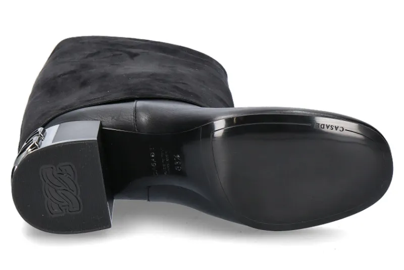 Der feminine Damenstiefel der Marke CASADEI wurde aus feinem Velours- und Glattleder gefertigt. Die Fütterung besteht aus hochwertigem Leder. Durch das umstülpen des Schaftes bietet der Stiefel zwei Tragevarianten. Die Laufsohle aus Leder wurde zum Teil mit Gummi überzogen um den bestmöglichsten Tragekomfortauf dem Asphalt zu gewähren. Eine Besonderheit bei diesem Modell ist der verzierte Blockabsatz aus Metall. Hergestellt mit viel Liebe zum Detail werden Schuhe von CASADEI in Italien.