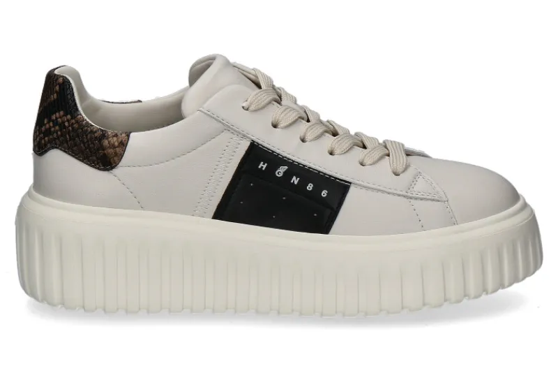 Der Hogan Damen-Sneaker H-STRIPES ALLACCIATO in Hellbeige ist die perfekte Mischung aus Eleganz und sportlichem Charme. Das Modell besteht aus hochwertigem Glattleder und besticht durch das schwarze Logodetail, die zusammen mit der abgesetzten Fersenkappe in Schlangenprint einen modernen Look verleihen. Die wechselbare Textilsohle sorgt für zusätzlichen Komfort, während das Meshfutter atmungsaktiv ist und für ein angenehmes Tragegefühl sorgt. Mit einer 50 mm hohen Plateausohle aus Gummi bietet der Sneaker nicht nur eine gute Dämpfung, sondern auch einen trendigen, erhöhten Stand. Das schlichte, aber dennoch raffinierte Design macht den Hogan H-STRIPES ALLACCIATO zu einem vielseitigen Begleiter für stilbewusste Frauen.