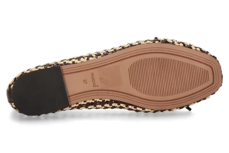 Die Inuovo Ballerina GOAT in braun überzeugt durch ihr edles, geflochtenes Glattleder-Obermaterial, das dem Schuh eine besonders feine und luxuriöse Textur verleiht. Die dezente Schleife auf dem Vorderfuß rundet das elegante Design dezent ab und macht den Schuh zu einem vielseitigen Begleiter für verschiedene Outfits. Das hochwertige Lederfutter sorgt für ein angenehmes Tragegefühl, indem es den Fuß sanft umschließt und für Atmungsaktivität sorgt. Die schlichte, aber stilvolle Farbgebung in Braun macht diesen Ballerina ideal für sowohl formelle als auch informelle Anlässe und lässt sich problemlos zu unterschiedlichen Kleidungsstücken kombinieren. Ein bequemer und zugleich eleganter Schuh für den Alltag.