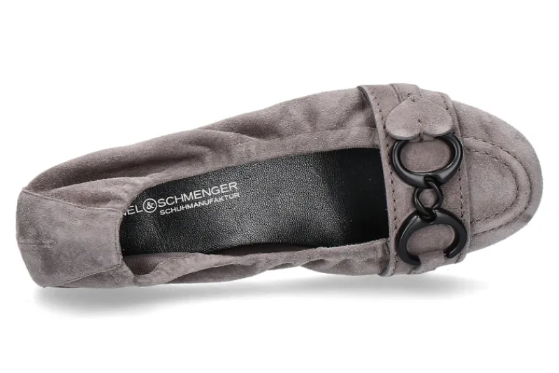 Die Kennel & Schmenger Ballerina aus feinem grauen Ziegenveloursleder besticht durch eine elegante Optik. Die schwarze Zierschließe verleiht dem Schuh eine raffinierte Note. Für einen optimalen Halt und eine bequeme Passform verfügt die Ballerina über einen Gummieinsatz. Dieser ermöglicht eine individuelle Anpassung an den Fuß und gewährleistet einen sicheren Sitz. Die griffige Gummisohle bietet einen zuverlässigen Halt auf verschiedenen Oberflächen. Die hochwertige Verarbeitung und das feine Ziegenveloursleder verleihen der Ballerina eine hohe Langlebigkeit und machen sie zu einem zeitlosen Begleiter für jeden Anlass. Die Kennel & Schmenger Ballerina vereint Stil, Komfort und deutsche Handwerkskunst zu einem exquisiten Schuhwerk.