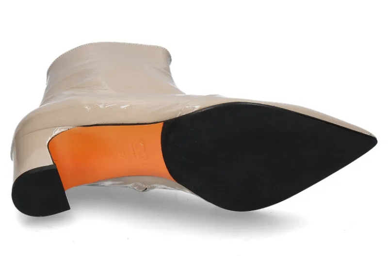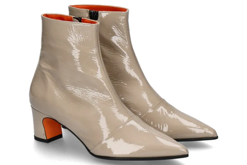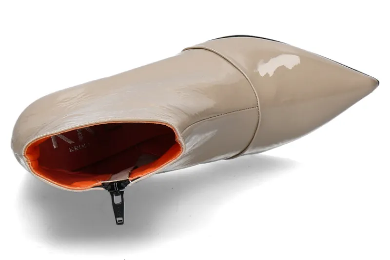 Die Kroll Stiefelette BACK in Sabbia/Beige ist ein stilvolles Statement für modebewusste Trägerinnen. Mit ihrem glänzenden Lackleder außen und der eleganten spitzen Schuhkappe strahlt sie modernen Chic aus. Das hochwertige Lederfutter im Inneren bietet maximalen Komfort und ein angenehmes Tragegefühl. Ein praktischer Reißverschluss an der Innenseite erleichtert das An- und Ausziehen. Die Kombination aus Gummi- und Ledersohle sorgt für eine optimale Balance aus Flexibilität und Langlebigkeit. Der 50 mm hohe Blockabsatz, ebenfalls mit glänzendem Lackleder überzogen, rundet das elegante Design ab und bietet gleichzeitig Stabilität. Diese Stiefelette ist perfekt für Frauen, die einen edlen und zugleich komfortablen Look bevorzugen.