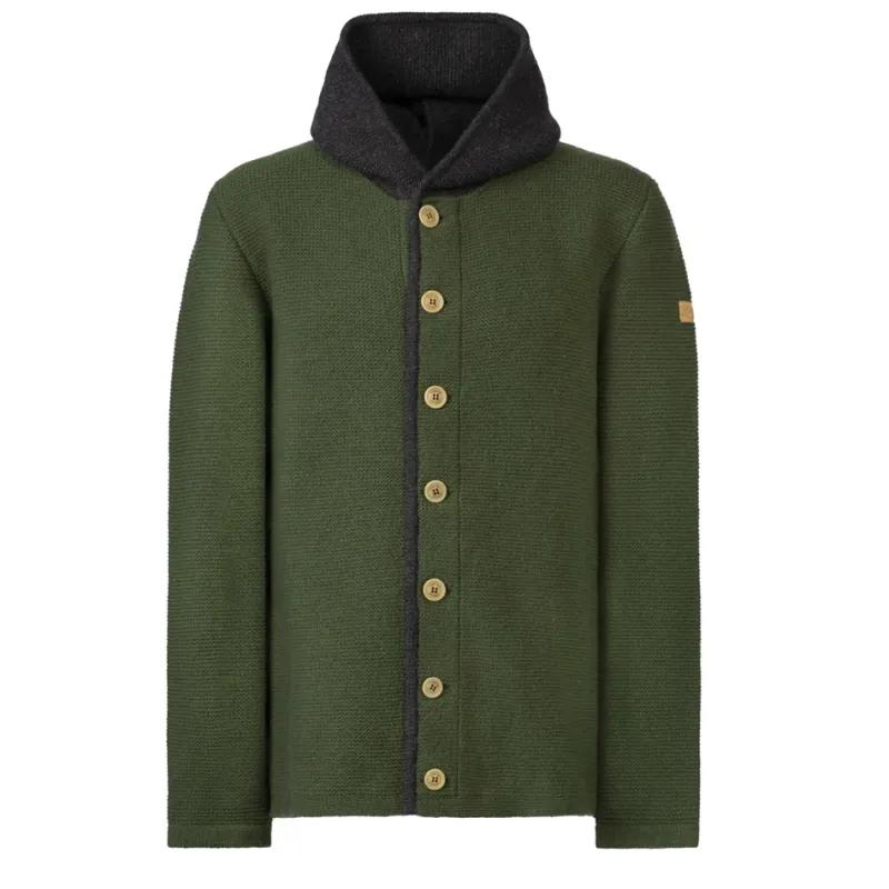 Die Knopfleiste dieses Jankers ist mit Lodenverstärkung versehen, was nicht nur für eine besondere Optik sorgt, sondern auch die Robustheit des Kleidungsstücks erhöht. Die Steinnussknöpfe verleihen dem Janker einen rustikalen Touch und runden das Gesamtbild perfekt ab.