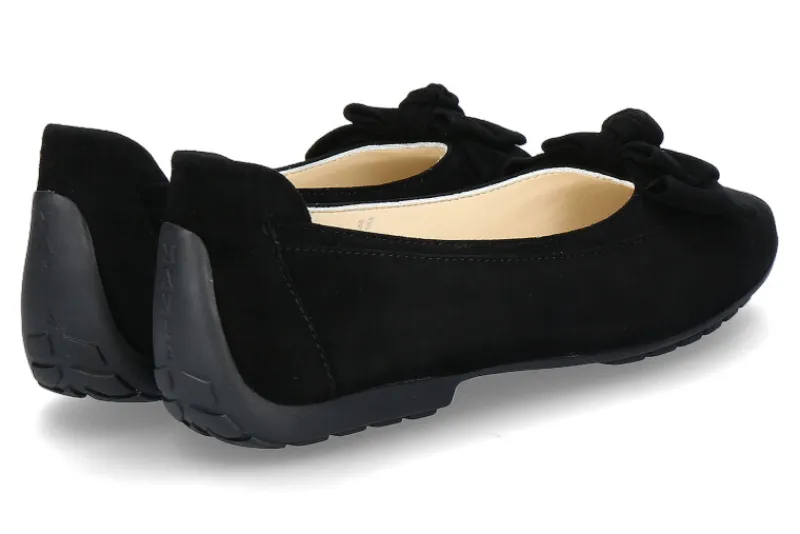 Der schwarze Mania Ballerina aus feinem Ziegenvelours ist ein zeitloser Begleiter für Business sowie für Freizeit. Das Vorderblatt ziert eine große Schleife aus feinem Velourleder die den femininen Look des bezaubernden Modells unterstreicht. Das Innenfutter besteht aus weissem Leder, wie auch die Innensohle. Mit mit einer leichten PROCAR Gummisohle, die an der Ferse hochgezogen ist, ist der Mania Ballerina angenehm zu Tragen. Die wunderbar flexible, rutschhemmend profilierte PROCAR Gummisohle ist an Kappe und Ferse im Stil einer Autofahrersohle hochgezogen. Mania Schuhe werden zu 100% in Italien von Hand gefertigt und bezaubern durch beste Verarbeitung und hohen Tragekomfort.