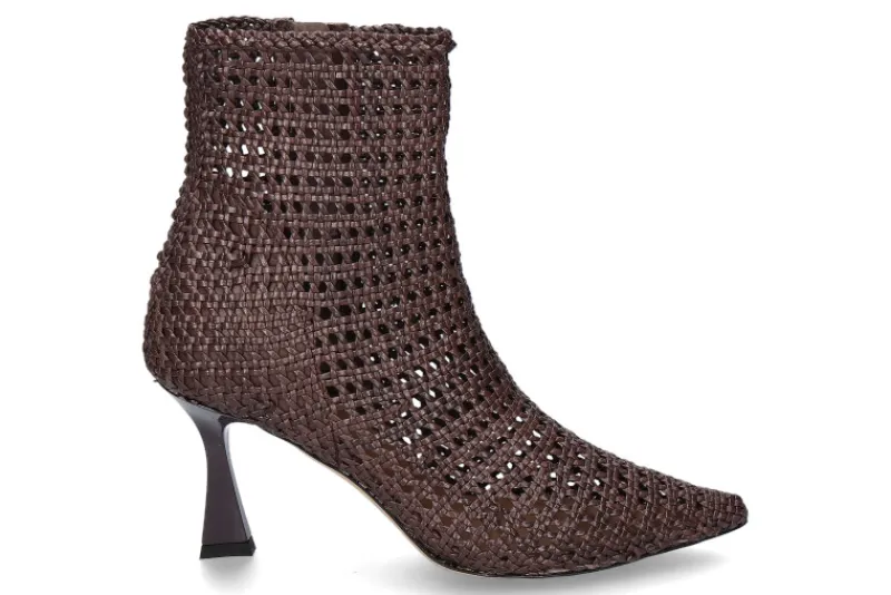 Die Martina T Stiefelette INTRECCIO in der Farbe TDM/Dunkelbraun überzeugt mit handwerklicher Eleganz und hochwertigen Materialien. Das geflochtene Glattleder verleiht dem Schuh eine besondere Textur und edle Optik. Die spitz zulaufende Schuhkappe unterstreicht den femininen Charakter, während der Reißverschluss an der Innenseite ein bequemes An- und Ausziehen ermöglicht. Innen ist die Stiefelette vollständig mit Leder gefüttert, was für ein angenehmes Fußklima sorgt. Der stabile, 75 mm hohe Absatz streckt optisch das Bein und bietet zugleich sicheren Stand. Abgerundet wird das Design durch eine edle Lederlaufsohle, die die Hochwertigkeit des Modells unterstreicht. Diese Stiefelette ist der perfekte Begleiter für stilbewusste Frauen – elegant, zeitlos und vielseitig kombinierbar.