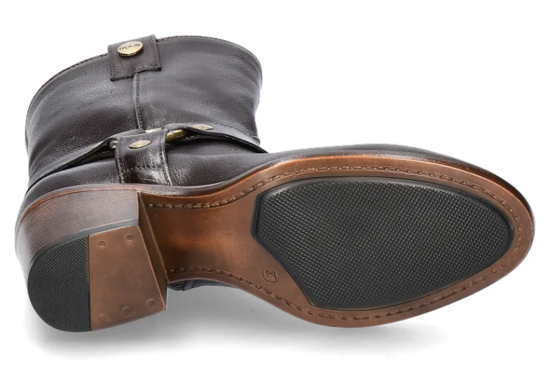 Die Mjus Stiefel aus dunkelbraunem Leder kombinieren Stil und Komfort. Sie verfügen über eine wärmende Textilfütterung und eine strapazierfähige Gummilaufsohle für sicheren Halt. Ein seitlicher Reißverschluss erleichtert das An- und Ausziehen. Die dekorativen Schnallenapplikationen setzen modische Akzente. Mit einem 6 cm hohen Blockabsatz bieten die Stiefel eine schmeichelhafte Höhe und Stabilität. Die Schafthöhe von 21 cm macht sie vielseitig und perfekt kombinierbar mit verschiedenen Outfits. Ideal für modebewusste Frauen, die Wert auf Qualität und ansprechendes Design legen, sind diese Stiefel eine hervorragende Wahl für viele Anlässe.