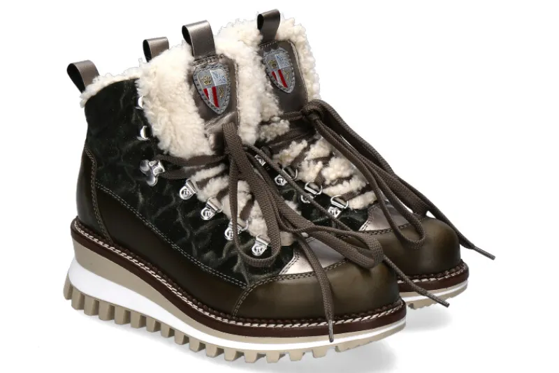 Damen New Italia Shoes Boots gefüttert ERIKA- schwarz/ gold/ grün