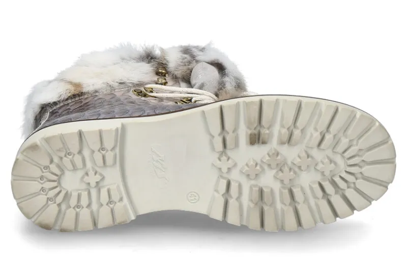 Damen New Italia Shoes Stiefelette KANNINCHENFELL GRAU GLITTER (36)