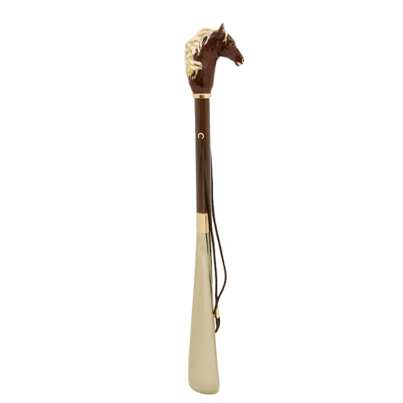 Nicht nur für Pferdebegeisterte ist der Schuhanzieher von Pasotti ein Traum! Ein Blickfang mit Whow- Effekt ist dieses Stück, welches zu 100% in Italien gefertigt wurde. Der Griff im Pferde- Design wurde handbemalt und besteht aus hochwertigem Messing. Die Stange wurde aus bestem Buchenholz gefertigt und ist mit einer Hänge- Vorrichtung versehen. Die goldfarbene Schaufel ist aus ABS Kunststoff, welche sehr flexibel und widerstandsfähig ist. Beste Verarbeitung und Made in Italy machen den Schuhlöffel von Pasotti zu einem Must- Have. Auch als Geschenk ist der Schuhanzieher immer gerne gesehen.