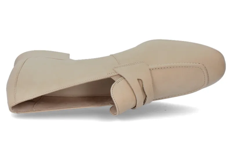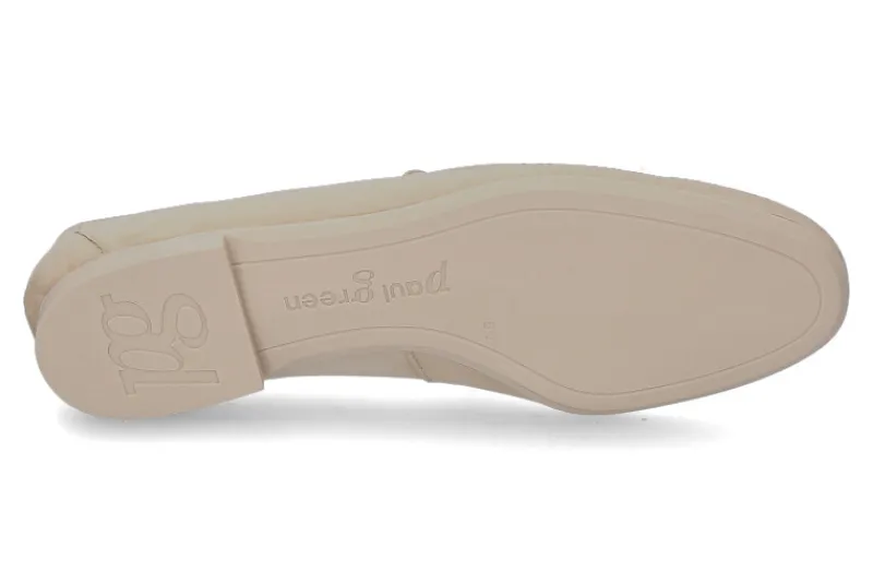 Der Paul Green Loafer ROYAL NUBUK SABBIA ist ein klassischer Slip-On-Schuh, mit einem Obermaterial aus beigefarbenem Leder. Er besitzt eine flache Sohle und eine schlanke, elegante Silhouette. Die Innensohle und das Futter sind aus weichem Leder gefertigt, um den Komfort zu erhöhen. Der Schuh kann mit verschiedenen Outfits kombiniert werden und ist eine zeitlose Ergänzung für jede Garderobe und eignet sich perfekt für formelle Anlässe oder als stilvolles Finish für einen lässigen Look.