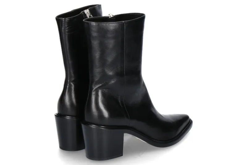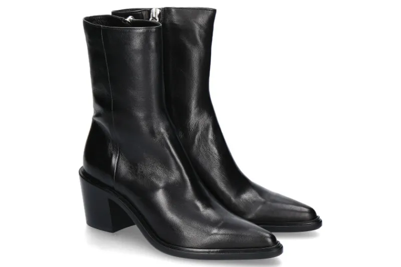 Die Pomme d’Or Stiefelette JANE aus schwarzem Glattleder ist eine elegante und stilvolle Wahl für jede Garderobe. Die spitze Schuhform verleiht ihr einen modernen und raffinierten Look. Ein Reißverschluss an der Innenseite sorgt für einfaches An- und Ausziehen und eine perfekte Passform. Die Innenfütterung aus Leder bietet höchsten Tragekomfort. Der 60 mm hohe Blockabsatz kombiniert Stabilität mit einem modischen Akzent. Die Laufsohle aus Leder und Gummi gewährleistet Flexibilität und Langlebigkeit. Diese Stiefelette ist ideal für verschiedene Anlässe, von formellen Veranstaltungen bis hin zu alltäglichen Outfits, und verbindet Funktionalität mit edlem Design auf hervorragende Weise. Perfekt für Frauen, die Wert auf Stil und Komfort legen.