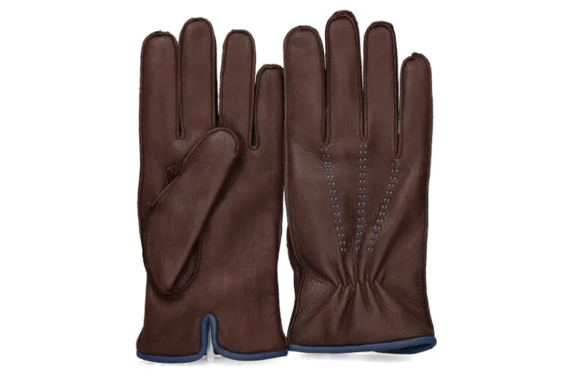 Die Herrenhandschuhe von höchster Qualität präsentieren sich im warmen Braunton mit eleganten blauen Details, gefertigt aus exquisitem Hirschleder. Ihr raffiniertes Design unterstreicht den maskulinen Stil und verleiht jedem Outfit eine anspruchsvolle Note. Das Innenfutter aus einer luxuriösen Mischung von Wolle und Cashmere garantiert nicht nur optimale Wärme, sondern auch ein besonders angenehmes Tragegefühl. Diese handgefertigten Handschuhe, zu 100% in Italien hergestellt, zeugen von höchster handwerklicher Kunst und Liebe zum Detail. Die Kombination aus Eleganz, Funktionalität und der Verwendung erstklassiger Materialien macht diese Herrenhandschuhe zu einem unverzichtbaren Accessoire für den stilbewussten Mann.