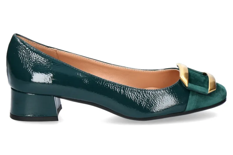 Die Status-Pumps mit einem 30 mm hohen Absatz sind ein Symbol für zeitlose Eleganz und raffinierten Stil. Hergestellt aus flaschenfarbenem Lackleder, verleihen sie jedem Outfit einen Hauch von Luxus und Exklusivität. Die Karree-Form und die glänzende Lackspitze verleihen diesen Schuhen eine klassische und dennoch moderne Note. Ein goldenes Accessoire auf dem Obermaterial verleiht den Pumps eine edle Nuance und betont ihre hochwertige Verarbeitung. Das Lederinnenfutter und die Lederinnensohle bieten nicht nur außergewöhnlichen Tragekomfort, sondern zeugen auch von der Liebe zum Detail, die in jedem Paar steckt. Der Blockabsatz verleiht den Schuhen Stabilität und eine zeitgemäße Silhouette. Diese Status-Pumps sind nicht nur ein modisches Statement, sondern auch ein Zeichen von Geschmack und Stilbewusstsein. Tragen Sie sie bei besonderen Anlässen oder im Alltag, um Ihre Eleganz und Ihren Status zu unterstreichen.