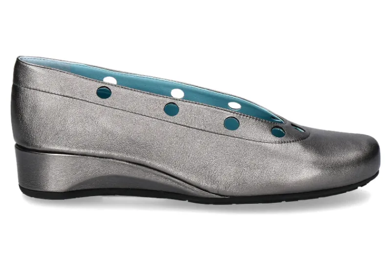 Mit diesem exklusiven Keilpumps von Thierry Rabotin kommen Sie bequem durch das Frühjahr/ Sommer. Aus bestem Leder gefertigt, ist der Schuh sehr weich und besitzt eine sehr gute Passform. In Sacchetto- Machart gefertigt, passt sich der Schuh dem Fuss an und drückt nicht. In einem leicht schimmernden Grau/ Silber ist er sehr gut kombinierbar und passt sich sehr gut der Oberbekleidung an.Handgefertigt werden Schuhe von Thierry Rabotin in Italien.