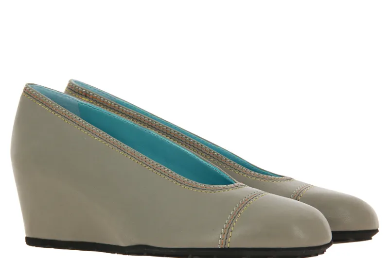 Der klassische Pumps von Thierry Rabotin mit Keilabsatz lässt sich vielseitig kombinieren. Der Grauton ist ein wahrer Allrounder und passt zu zahlreichen Looks. Der Schuh wird aus hochwertigem Leder in Italien gefertigt. Die Sohle aus Gummi sorgt für einen sehr angenehmen Tragekomfort.