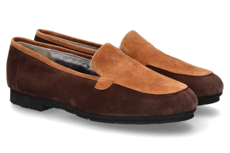 Weich und bequem ist der Slipper von Thierry Rabotin aus bestem Veloursleder mit Lammfellfutter. Das Obermaterial in der Frabe Braun/Cognac macht den Schuh edel und dennoch sportlich. Griffig ist die Gummisohle in Schwarz. Ein Traum am Fuss und zudem mit einer traumhaften Passform ausgestattert wird das Modell BOSCO sicher zu einem Liebling in ihrem Schuhschrank. Gefertigt werden Schuhe von Thierry Rabotin zu 100% in Italien.