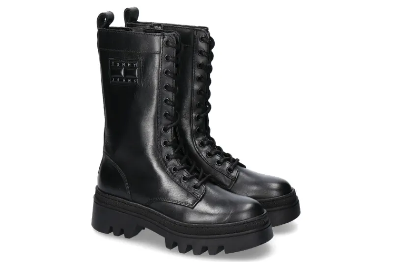 Die Damen-Schnürstiefel aus der Tommy Jeans Kollektion von Tommy Hilfiger präsentieren sich in elegantem schwarzen Leder mit einem seitlichen Tommy Hilfiger Logo, das in Schwarz gehalten ist. Die derbe Gummisohle mit Profil verleiht den Stiefeln einen robusten Charakter und bietet ausgezeichnete Traktion auf unterschiedlichen Oberflächen. Das Innenfutter aus Textil sorgt für Komfort und Wärme. Ein seitlicher Reißverschluss ermöglicht einen einfachen Einstieg. Diese Stiefel sind eine gelungene Kombination aus urbanem Stil und praktischer Funktionalität. Perfekt für modisch bewusste Damen, die einen vielseitigen Begleiter für unterschiedliche Gelegenheiten suchen. Mit dem dezenten Logo-Detail und der hochwertigen Verarbeitung sind sie ein zeitloses Accessoire, das sowohl Trendbewusstsein als auch Komfort vereint.