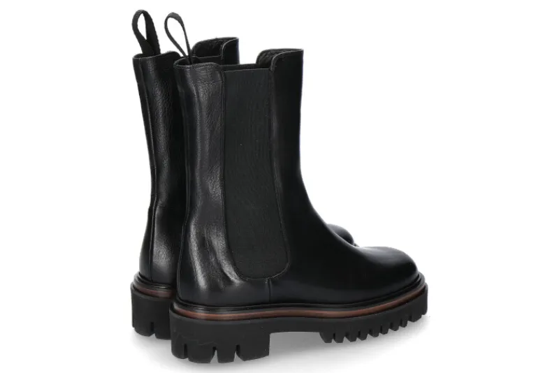 Mit dieser trendigen Stiefelette von Truman’s sind Sie für die Wintersaison perfekt gekleidet. Das Modell im Chelsea Stil besitzt eine Schafthöhe von ca. 20 cm (gemessen bei Schuhgrösse 37) und lässt sich durch die beiden Stretcheinsätze sowie der Zuglasche schnell an- und ausziehen. Ein akzentuierender Blickfang ist der leichte, schwarze Gummiboden mit dem besonderen Profil und dem handwerklichen Rahmen. Besonders besticht bei diesem Modell die Karreeform, die das Modell in Form abrundet. Die weiche Innenpolsterung machen den komfortablen Boot alltagstauglich und für den Winter zu einem Must Have! Gefertigt wurde die Truman’s Stiefelette zu 100% in Italien.
