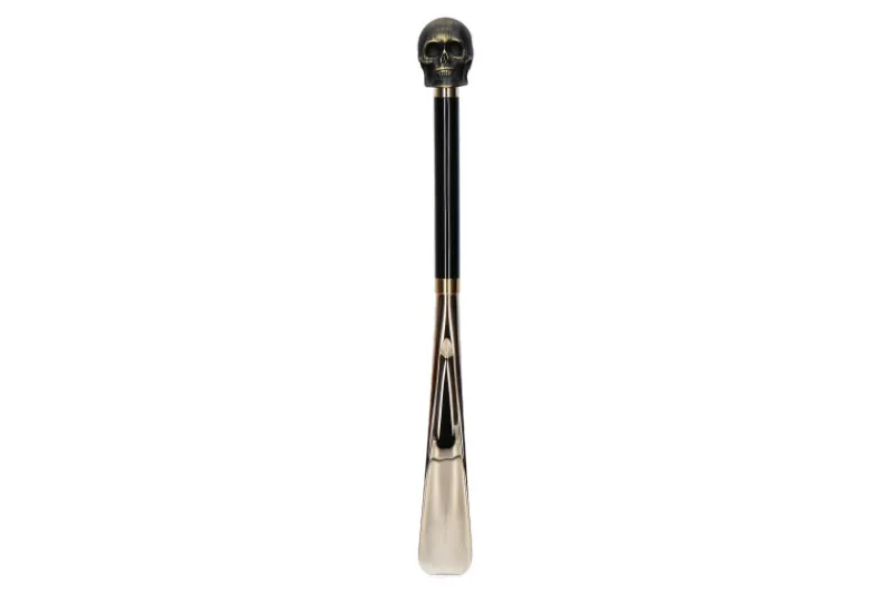 Ein Blickfang ist der Schuhanzieher mit mattem Totenkopf aus gepresstem Marmorstaub. Mit goldenen Details versehen, ist dieser Schuhlöffel sowohl als Geschenk oder zum exklusiven Start in den Tag ein Must-Have. Die Schaufel besteht aus ABS- Kunststoff und ist sehr widerstandsfähig. Gefertigt werden die edlen Teile von Utile4 zu 100% in Italien.