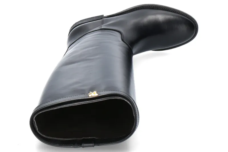 Die Via Roma 15 Stiefel im Reiterlook sind ein Ausdruck von zeitloser Eleganz und erstklassiger Handwerkskunst. Diese schwarzen Lederstiefel präsentieren sich in einer charakteristischen zigarrenförmigen Silhouette, die eng am Bein anliegt und an klassische Reitstiefel erinnert. Ihre hochwertige Verarbeitung zeigt sich im Lederinnenfutter und der Lederinnensohle, die für unvergleichlichen Tragekomfort und Langlebigkeit sorgen. Das goldfarbene Logo am oberen Schaft verleiht diesen Stiefeln subtilen Luxus und eine unverwechselbare Note. Die Ledersohle ist mit einem Gummiüberzug versehen, der eine ausgezeichnete Griffigkeit und Langlebigkeit bietet. Diese Stiefel sind nicht nur ästhetisch ansprechend, sondern auch funktional und vielseitig. Sie eignen sich perfekt für Reitabenteuer, da sie die authentische Reiterästhetik verkörpern. Gleichzeitig können sie mit Jeans, Röcken oder Kleidern kombiniert werden, um einen schicken und zeitlosen Look für den Alltag zu kreieren. Die Via Roma 15 Stiefel im Reiterlook sind die perfekte Wahl für alle, die Stil und Qualität schätzen. Mit ihnen sind Sie sowohl in der Sattelkammer als auch auf der Straße stilvoll unterwegs.