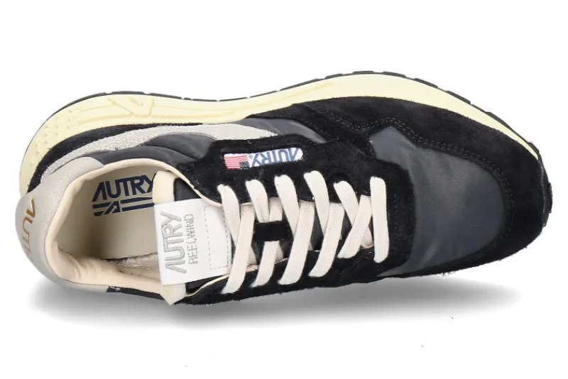 Der Autry Herren-Sneaker REELWIND setzt Maßstäbe als inspirierter Running-Schuh, gefertigt aus elegantem schwarzem Veloursleder und strapazierfähigem Nylon. Mit dem markanten seitlichen Autry Logo erhält der Schuh eine individuelle Note. Die hellbeige Sohle verleiht nicht nur einen stylischen Kontrast, sondern bietet auch optimale Dämpfung während des Laufens. Die herausnehmbare Lederinnensohle sorgt für anpassbaren Tragekomfort und unterstützt den Fuß perfekt. Das Frottee-Futter verleiht dem Schuh nicht nur eine luxuriöse Haptik, sondern gewährleistet auch ein angenehmes Tragegefühl. Der REELWIND ist somit nicht nur ein Blickfang, sondern auch ein funktionaler Begleiter, der sowohl sportliche Leistung als auch stilvolle Eleganz vereint.