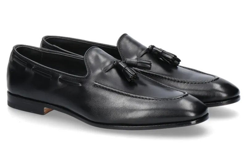 Die Church’s Tassel Loafer für Herren in schwarzem, weichem Kalbsleder verkörpern zeitlose Eleganz und erstklassige Handwerkskunst. Das hochwertige Kalbsleder verleiht den Loafern eine luxuriöse Textur und einen anspruchsvollen Look. Die Ledersohle unterstreicht die klassische Eleganz und bietet eine solide Basis für jeden Anlass. Das ungefütterte Design in Verbindung mit der Lederinnensohle sorgt für ein leichtes, atmungsaktives Trageerlebnis. Das markante Tasseldetail auf der Vorderseite verleiht dem Schuh eine subtile Raffinesse. Die Church’s Tassel Loafer zeugen von unübertroffener Handwerkskunst und einem zeitlosen Design, das die Marke bekannt gemacht hat. Ein unverzichtbares Element für den stilbewussten Herren.