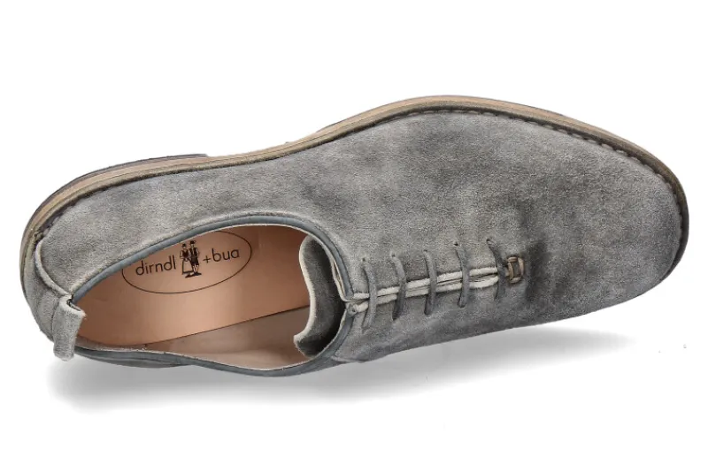 Die Trachtenschnürer von dirndl+bua für Herren präsentieren sich in einem angesagten Vintage-Look aus gewaschenem Veloursleder in eleganter Grautönung. Das hochwertige Material verleiht den Schuhen nicht nur eine ansprechende Ästhetik, sondern auch ein besonders weiches Tragegefühl. Das Innenlederfutter und die Innenledersohle schaffen eine luxuriöse Umgebung für den Fuß und garantieren höchsten Komfort. Die Ledersohle mit einem dezenten Gummieinsatz gewährleistet nicht nur eine flexible Bewegung, sondern auch rutschfeste Stabilität. Diese Trachtenschnürer sind nicht nur ein stilvolles Element für Trachtenoutfits, sondern auch ein Statement für Qualität und Handwerkskunst. Die Kombination aus zeitgemäßem Vintage-Design und erstklassigem Material macht sie zu einem must-have für traditionell inspirierte Mode.