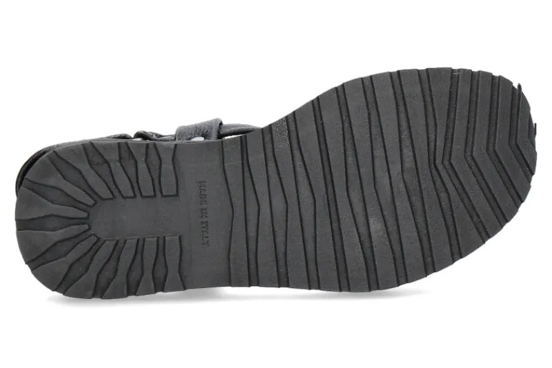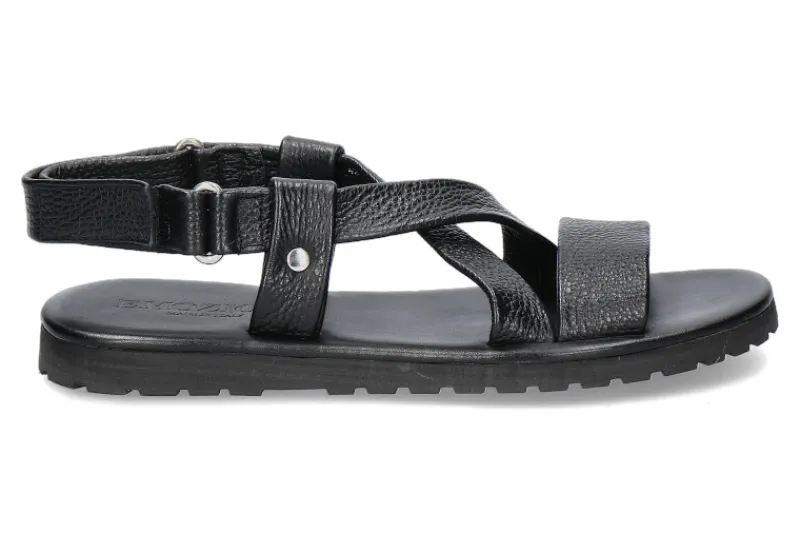 Die schwarze Ledersandale von Emozioni ist ein sehr guter Begleiter für die heißen Sommertage. Die verschlungenen Lederriemen sorgen für ein stylisch aussehen. Für einen maximalen Komfort sorgt die weiche Decksohle aus Leder und die flexible Gummisohle. Hergestellt werden Schuhe von EMOZIONI bestens in Italien.
