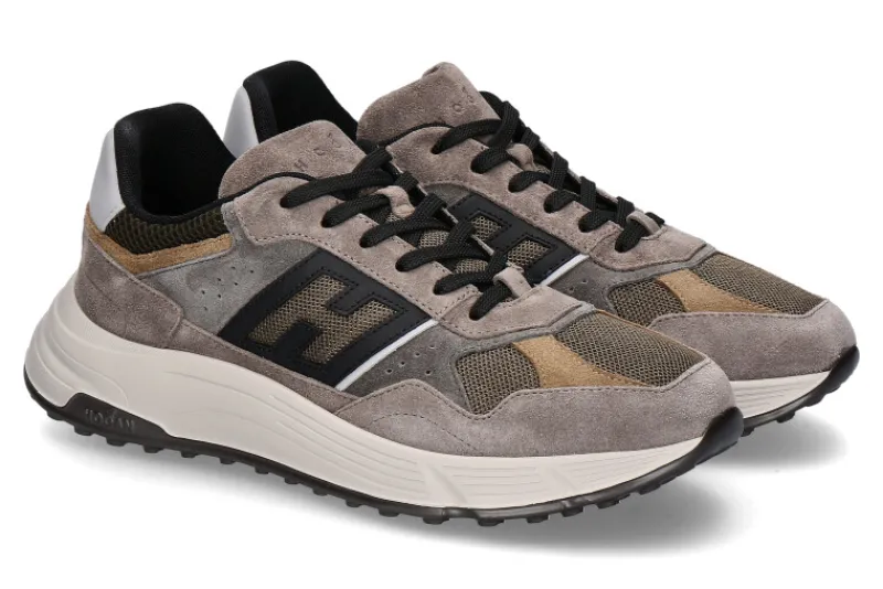 Die Hogan Herren-Sneaker HYPERLIGHT ALLACCIATO in Grau sind ein sportlich-elegantes Modell, das durch seine hochwertige Materialkombination aus Veloursleder und Mesh überzeugt. Diese Kombination sorgt nicht nur für eine ansprechende Optik, sondern auch für optimale Atmungsaktivität und Komfort. Die Textilfütterung gewährleistet ein angenehmes Tragegefühl, während die wechselbare superweiche Textilsohle zusätzlichen Komfort und Anpassungsfähigkeit bietet. Die sportive Gummilaufsohle, ergänzt durch eine helle Zwischensohle, bietet exzellente Dämpfung und Flexibilität, was sie ideal für den dynamischen Alltag macht. Diese Sneaker vereinen modernes Design mit herausragendem Tragekomfort und sind perfekt für modebewusste Männer geeignet.
